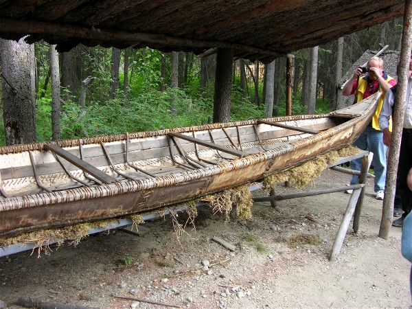 A birch bark canoe, somewhat similar to what we saw at Old Fort William in Thunder Bay, ON.