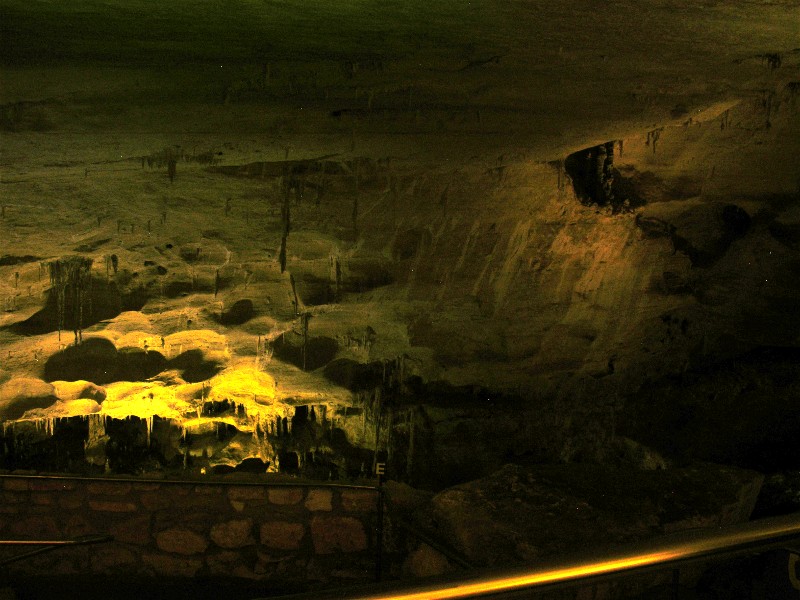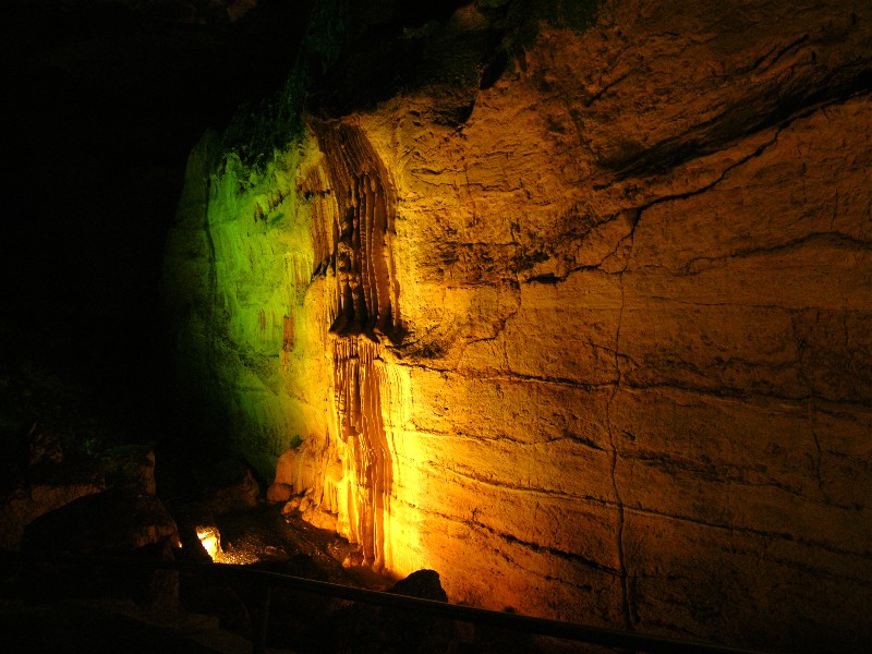 This one used the "fireworks" scene mode of the camera. It is OK, but not as good as "night landscape" which we used for most all photos of the caverns.