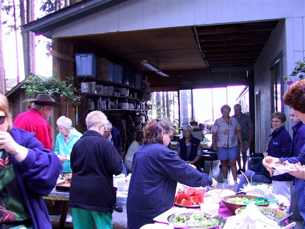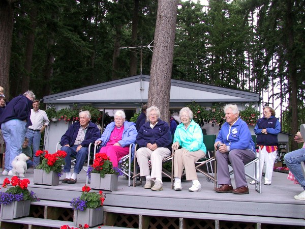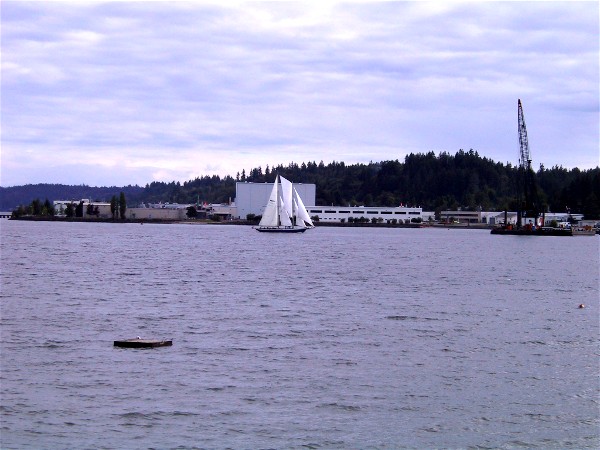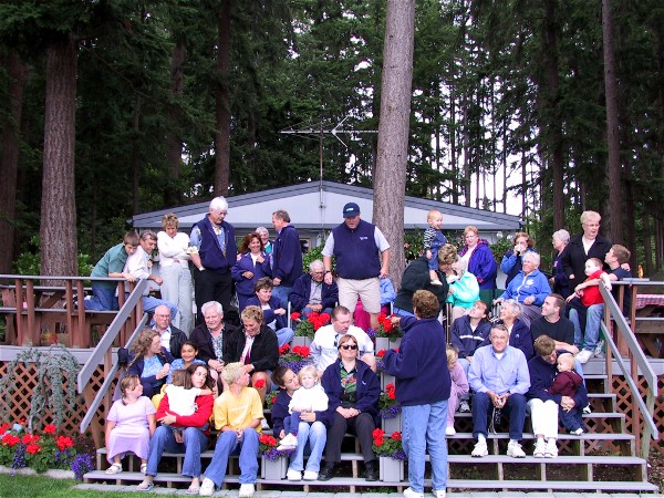 Every summer Diane's grandmother's family on her father's side has a family reunion, which they call the Family Gathering. It takes place in late July or early August at Diane's aunt's and grandmother's house. The houses are next to each other and are on the water in Poulsbo, Washington. Here is the view from the yard:
