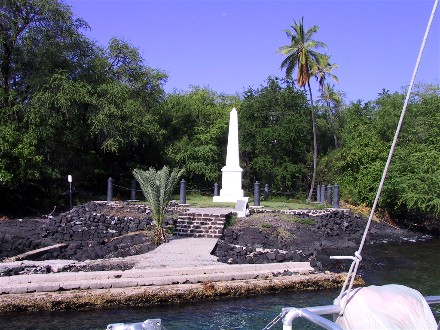 The monument is owned by the British Government. A couple days later we took a snorkeling trip to Kealakekua Bay. In 1995 we took a zodiac, this time we went for a catamaran, it had a toilet on board. Here is the catamaran: