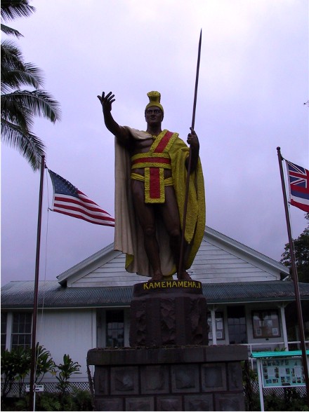 Another day we drove up to the north end of the island, where King Kamehameha was born. Kamehameha united the islands and was in charge when whites came to live there. He was a teenager when Capt. Cook visited. This statue is life size, he was over seven feet tall in real life and intimidated people: