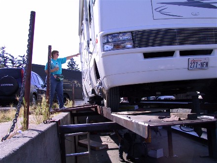 We ended up visiting the Port Angeles waterfront when we got a call, there was a problem and we needed to head to Eric's. When we got there they told us the Safe-T-Plus was installed wrong and we had some major work needed to make the motorhome safe, a bolt was never installed: