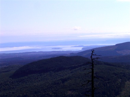 Since we had no cell phone service at the top we headed back down and Vancouver Island was just visible now that the fog had cleared: