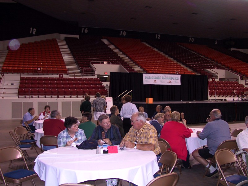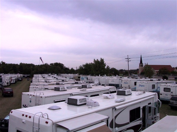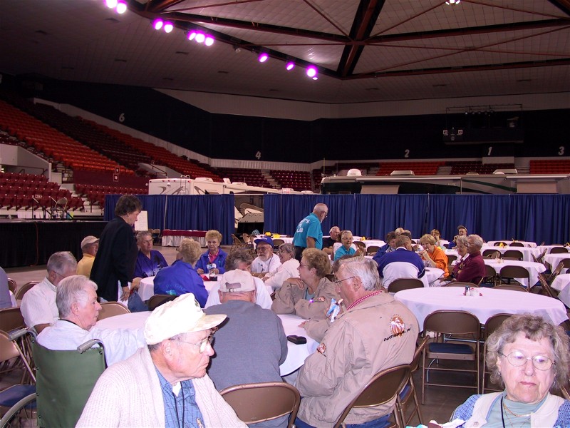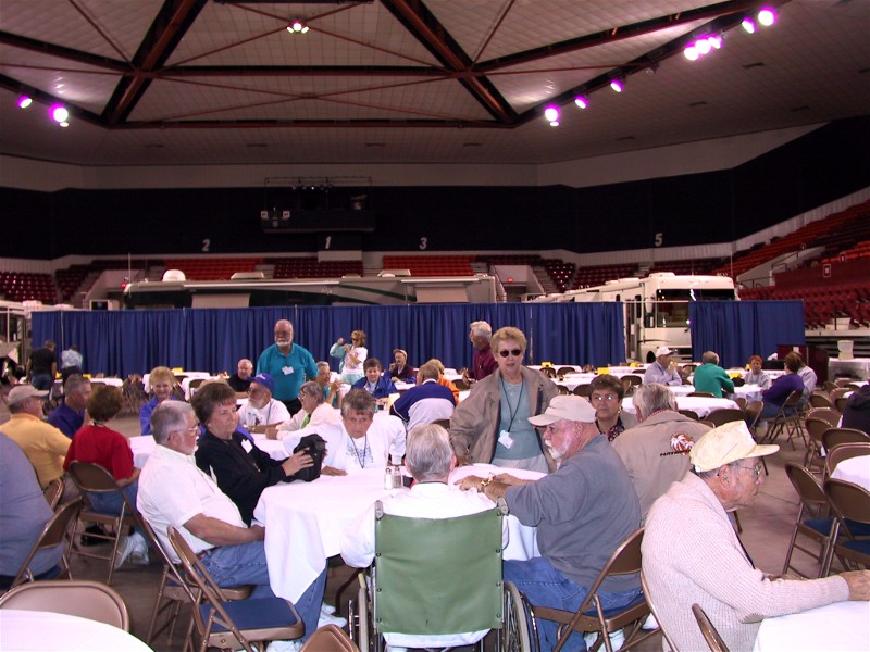 Bill walked over to see if they were also going to the National RV owners rally (called the Islanders club at the time) and found out they were and suddenly we had people we were going to dinner with and hanging out with. The next two days went by fast and we all moved to the Convention Center in town for the rally on the 25th. Here is a shot of the RVs at the rally: