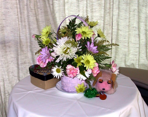 The stuffed dog was a favorite of Mara's, she had it since it was larger than she was. It would move around the house on a random basis, but she didn't hurt it and it survived 14 years. We brought it with us so Mara had some comfort of the familiar. The flowers lasted for many weeks and Diane set up the shrine until they no longer were presentable.