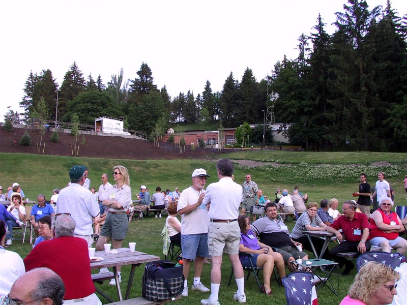 We met up with Mary and Pete on the way back to the Seattle area, we had a lot in common and arranged to stay at the same campground. We told them we were also leaving the work world but were keeping the house, they were selling and going full time. We lived close to each other. We ended up at their party when they were moving out the house and tentatively planned to meet up on our respective ways east in early September. We ended up with motorhome problems and left later so we never did meet up on the road. They ended up deciding that full time RVing was not for them, but you can read about it on their website, http://www.dozinghippo.com under http://dozinghippo.com/rvtrip/diary.htm .
