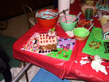 We had the annual gingerbread house party just like last year. This time it was after Halloween and Jane hosted it in Seattle on November 17th. Here are some pictures of the fun: