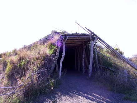 Since this museum hadn't impressed us we decided to see the Stuhr Museum in Grand Island, as was recommended by the campground manager. We wished we hadn't wasted the time going to Kearney and spent the entire day here. We ran out of time. They had displays, nice gardens, a recreated railroad town with docents playing old roles, native earth lodges and artifacts, the place was really nice. Click on their website for more, but here are a few pictures we took. This is the main museum and a shot of the grounds: