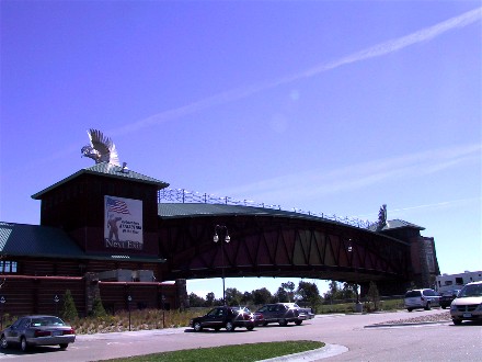 The storm was over so we started heading east again and realized we did not have to be in such a hurry. At the campground in Cheyenne we were told to go to the big "camping store" in Nebraska. The camping store was Cabella's, which is a big sporting goods store and didn't have much camping equipment. One person had a t-shirt that said, "go out and commune with nature, then marinade it." This fit the philosophy of the store and we decided to think of Cabella's as "REI for carnivores". We did have lunch at their lunch counter, but nothing too interesting. On we went further into Nebraska and it was flat and unexciting. We decided to camp at a small campground in Roscoe, it turned out to be a converted pasture with 12 large full 50AMP hookups: