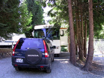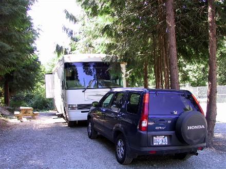 Diane's parents had bought a membership in Western Horizons Resort, and their home park was Tall Chief in Fall City, WA, close to the Seattle area. Diane as their child could stay at Tall Chief three one week stays a year for free, so we took advantage of it and drove 87 miles to Tall Chief on the 5th. Here is our campsite: