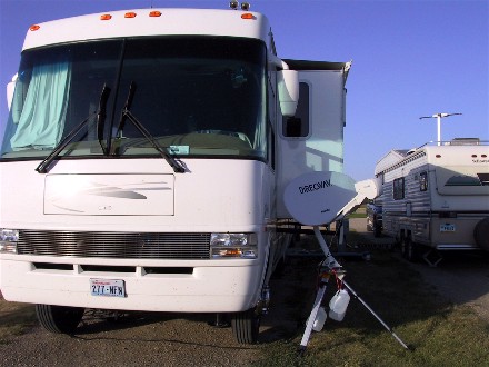 The wind blew hard so Bill moved the satellite dish to a more protected spot: