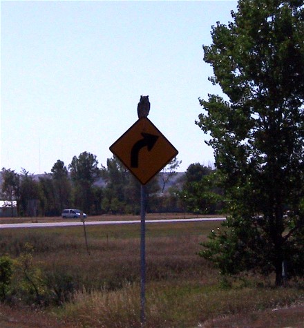 That is the North Dakota capital building, the "skyscraper on the prairie" in the distance. We also saw this owl on a sign: