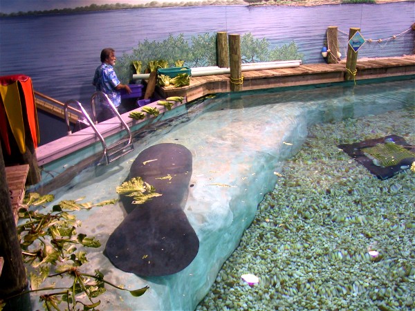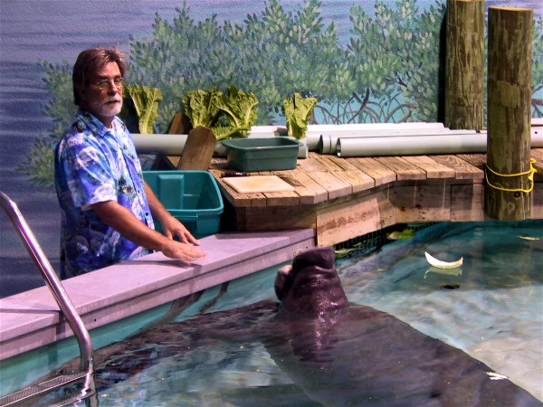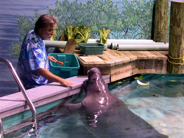 One day we went to the local aquarium which had a manatee. Here he is getting fed: