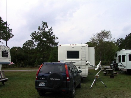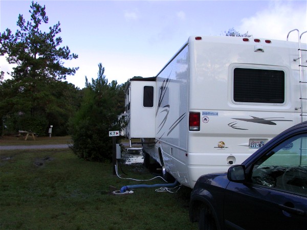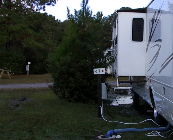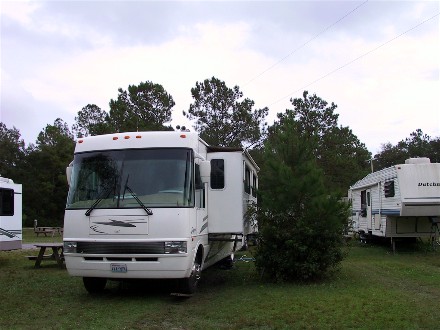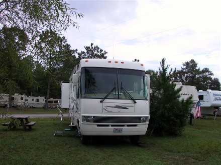 October 27th we drove 111 miles to Lake Aire Campground in Hollywood, SC, very close to Charleston, SC. Half a mile away were the two campgrounds that had Charleston addresses, so we were about as close as we could get. We were actually about ten miles from the real city. Here is our campsite: