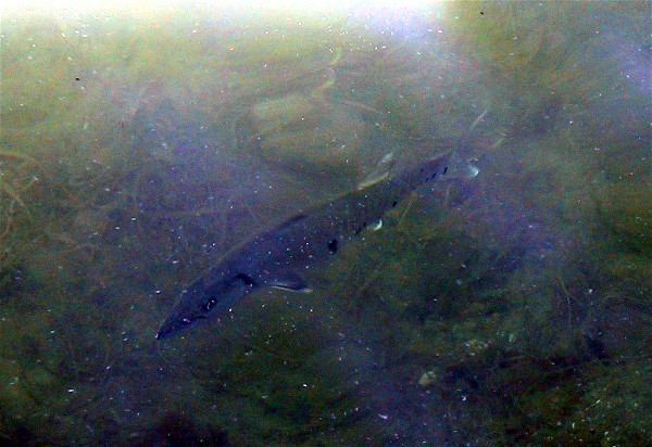 We did see one fish, this photograph has the contrast cranked up so the fish is more visible: