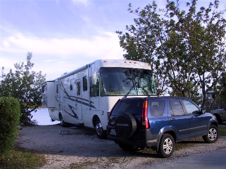 The campground was at milepost 19, so it was 19 miles from the end of highway 1 in Key West. It was (and still is as we write this in May 2006) the most expensive campground we have stayed at and we had a deal. Other campgrounds had higher rates, including a KOA just up the road which was twice as expensive. We expected to only visit the Keys once, so we were willing to pay for the experience.