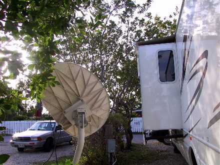 In front was the office/clubhouse. We had just enough room to get the satellite dish working: