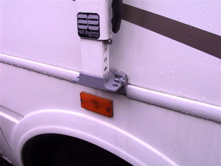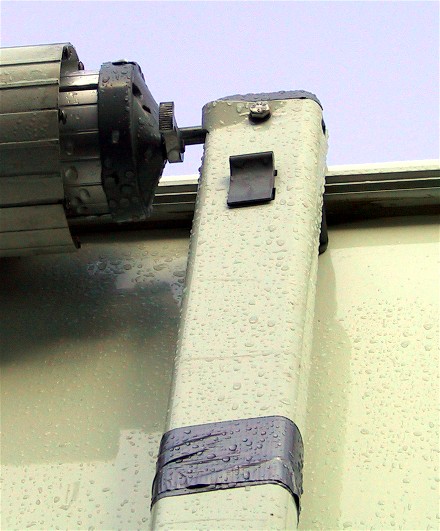 Here are some pictures of the awning after it was temporarily fixed. First the bolts replacing the normal connections: