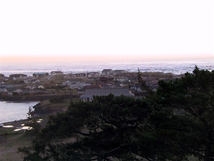 We made it to Waldport and stayed at the KOA, it was a 219 mile drive. The campground had a trail to get some views, so we went to look just before sunset: