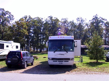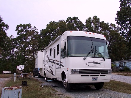 October 21st we drove 140 miles to the Yogi Bear Jellystone Campground in Emporia, VA. They put is in a spot that was not level right by the highway. We were unhappy to be by the highway because of the traffic noise.
