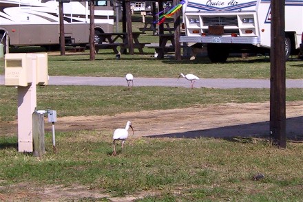 Here is a view of the ocean from our windshield and a some White Ibis roaming the campground.