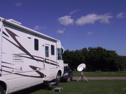 October 7th we drove 60 miles to Meadowlark RV Park in Middletown, RI to visit Newport, RI. 60 miles doesn't sound like much but once we were on the state highways in Rhode Island we were very alert, they don't have much land in Rhode Island so they make the lanes narrow. Then there was a construction zone and detour on the way to the campground so we maneuvered the motorhome through some narrow streets. When we got to the campground our site was still occupied and the people occupying it were nowhere to be seen. The campground owner was very unhappy since it was an hour after checkout. She moved us to overflow, we didn't have sewer but would be fine for two days. Eventually the people came back, they went to visit some of the mansions and didn't realize it was going to take as long as it did. We were already set up so we stayed where we were, it was quiet: