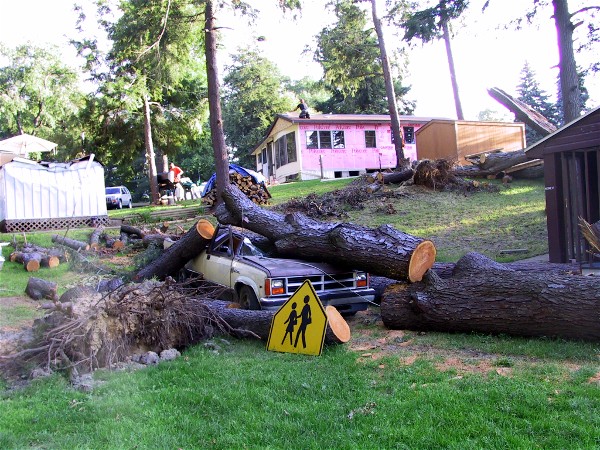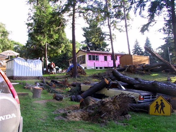 A storm or possibly a tornado had done some damage close to the lake recently, we didn't find out any details: