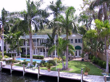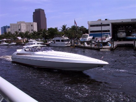 This boat is for the ocean, this house is modest for Fort Lauderdale but probably is worth in the millions of dollars for being on the canal:
