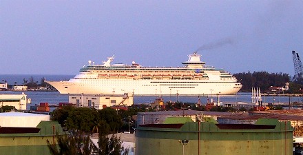 We turned in the rental car and arranged to take an Everglades tour the next day in the morning. We walked up the street and tried another place we had liked in 1997, Bravo, an Italian place and it was very good again. In the morning a Royal Caribbean cruise ship was in the cruise terminal: