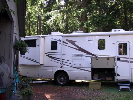 After the trial was over and the motorhome went back to Woodinville on the 29th of June. Some things in the house were boxed up and put in storage. Books were sold. We got some help moving the big items to storage. We moved into the motorhome parked next to the house on July 8th, the next morning the house got thoroughly cleaned and the carpets shampooed. We moved the motorhome ten miles to Lake Pleasant RV Resort in Bothell, WA on the 9th for one night. We were full timers now.