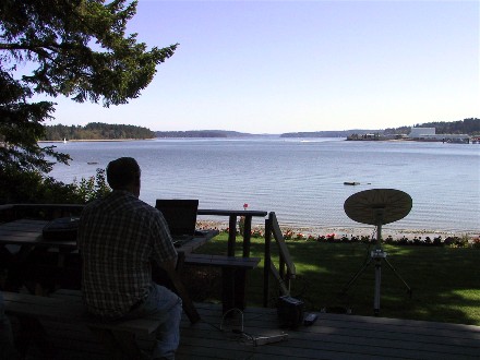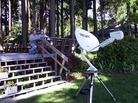 On June 15th Diane's parents came to Poulsbo and Gregg helped us get our new internet satellite dish going. We had already bought the equipment, now we had to get online and start paying for service: