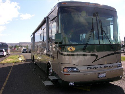 July 17 we took the 7% grade down to Granite Lake RV Resort in Clarkston, WA for a total of 37 miles. We took the grade using the exhaust brake at about 35mph and it went great. We noticed a fifth wheel followed us down and they also followed us to the campground. They had also come from Life On Wheels and figured we knew what speed to take the hill at. They said 35mph was a good speed and they needed the reminder to slow down.