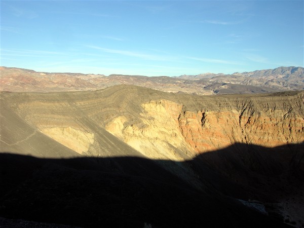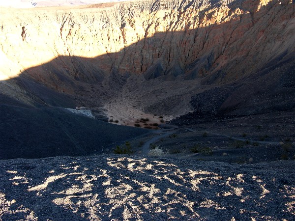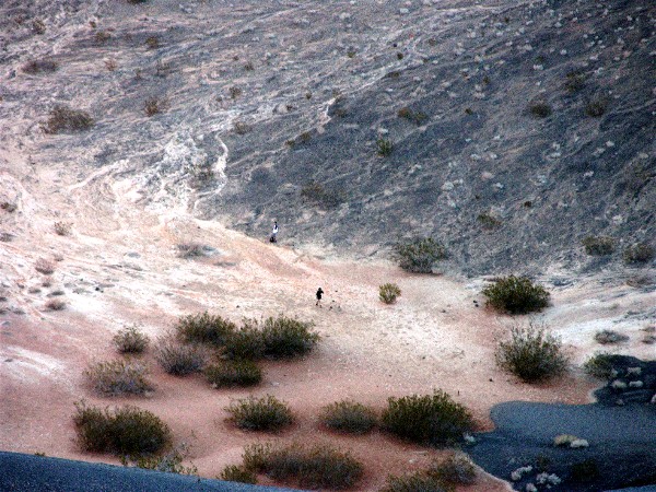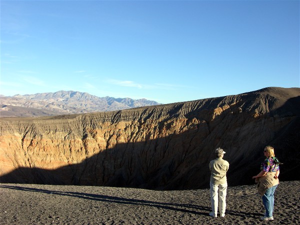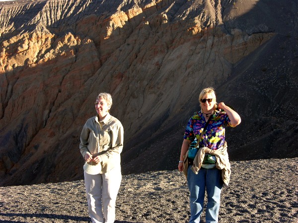 It was getting late so we went to see Ubehebe Crater before heading back to the campground. Here are Barb and Diane looking across the crater: