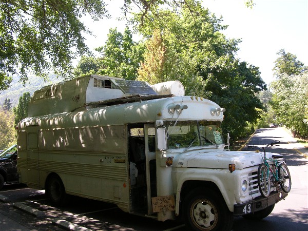 We had been in Klamath Falls before and enjoyed our stay. August 28th we drove the car over the Cascades to Ashland, OR and had lunch. We saw this converted bus in town: