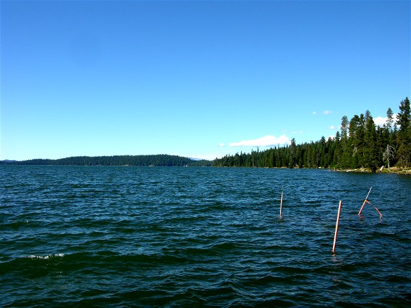 The forest service has a campground right on the lake, it would have cost us $20/night for no hookups since we needed a "premium" site. We were across the road with a large, full hookup 50AMP site for $24.54/night.
