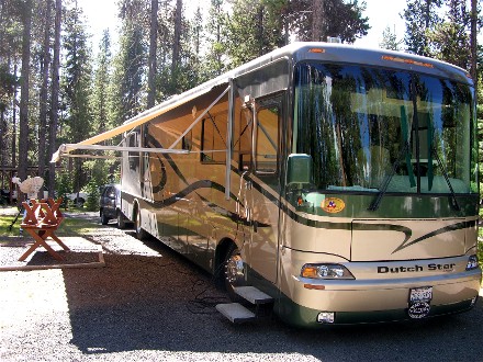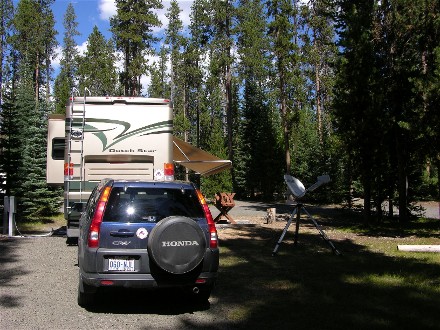 On the 29th we drove 77 miles to Diamond Lake and stayed at Diamond Lake RV Resort. Here is our campsite: