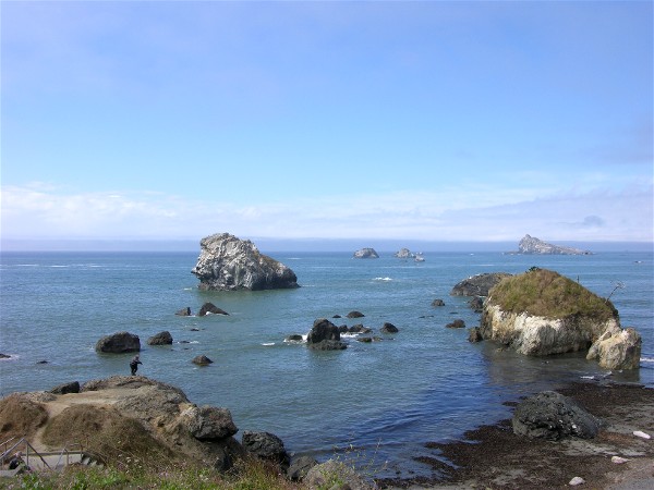 The scenic coastline continues south into California: