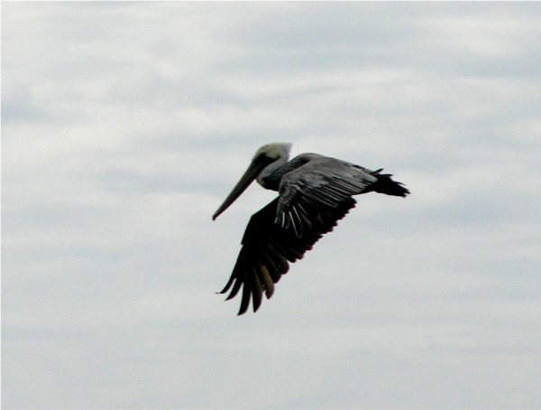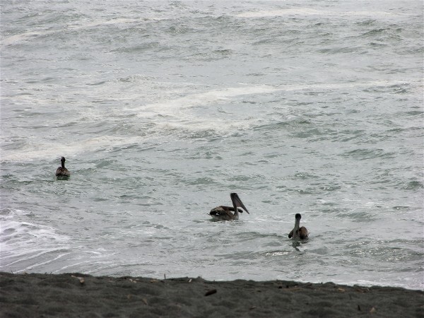Brown pelicans in the water: