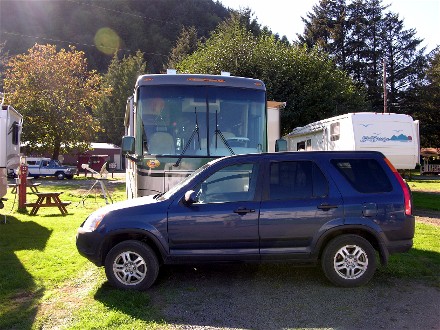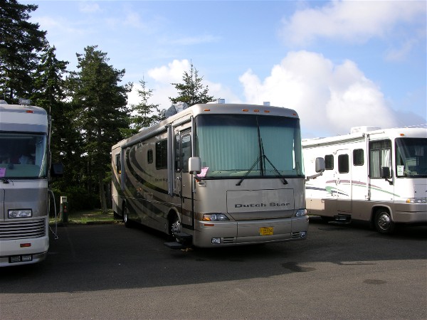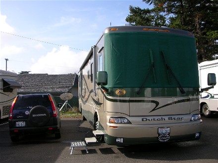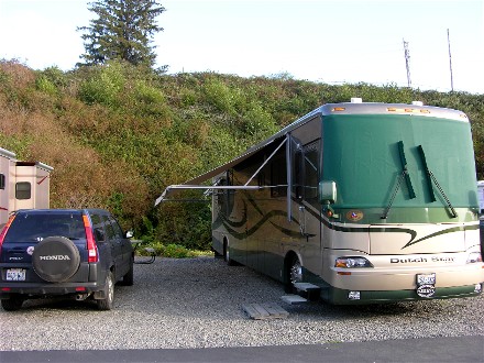 September 13th we drove 74 miles south on the coast to the Florence, OR Elks lodge as guests of Robin and Sharyn. Here is our campsite: