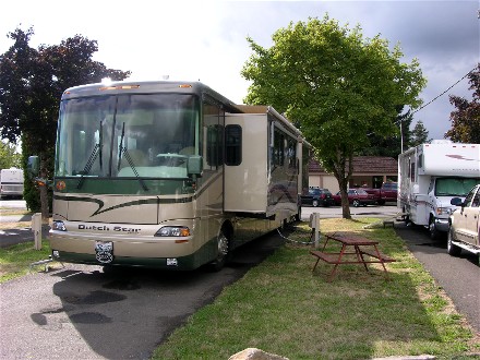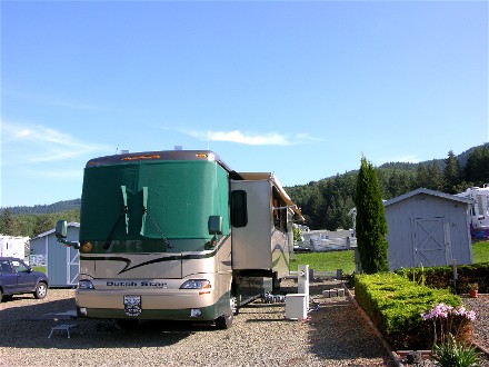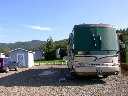 It was Labor Day Weekend so on the 3rd we headed 66 miles south to Timber Valley Escapees Co-op in Sutherlin, OR. We got a nice, large site. An Escapees park is a good place for a holiday.