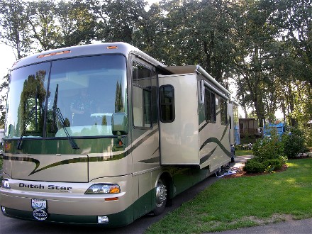 We were now ready to get our solar panels installed so on September 1st we left Diamond Lake and drove across the Cascade Mountains to Eugene. We camped at Deerwood Campground on the south end of the city and had driven 165 miles. Here is our campsite: