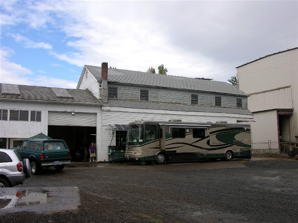 We got up in the morning and moved to AM Solar's location to get the solar system installed. Here is the motorhome in place with the slide out to make it easier to install the wiring: