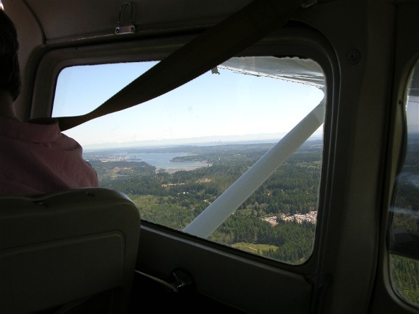 June 16th we drove down to the Bremerton airport to meet Diane's parents Gregg and Rosalie. Gregg was flying their Cessna 172 from Kennewick and we were all going to Friday Harbor in the San Juan Islands for lunch. We didn't get any pictures of the outside of the plane but Bill got to try his new camera on the flight up. Here is a typical view: