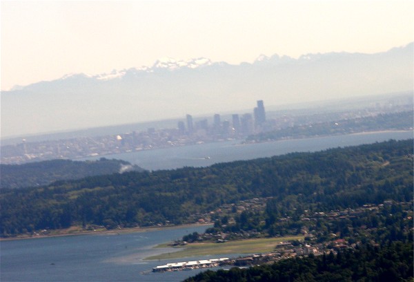 The Seattle skyline was a bit less hazy but it took turning the contrast up high to to see it: