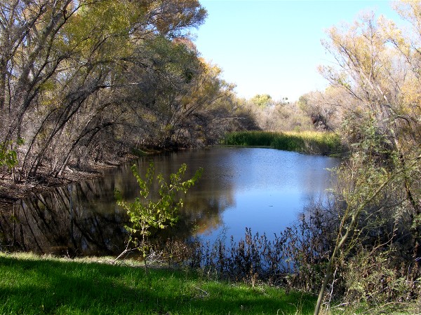 The Nature Conservancy has a preserve just south of Wickenburg, AZ where the Hassayampas River goes above ground. Mostly the river is underground, but where it comes above ground you have trees and wildlife. Here is a pond in the preserve: