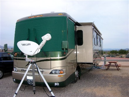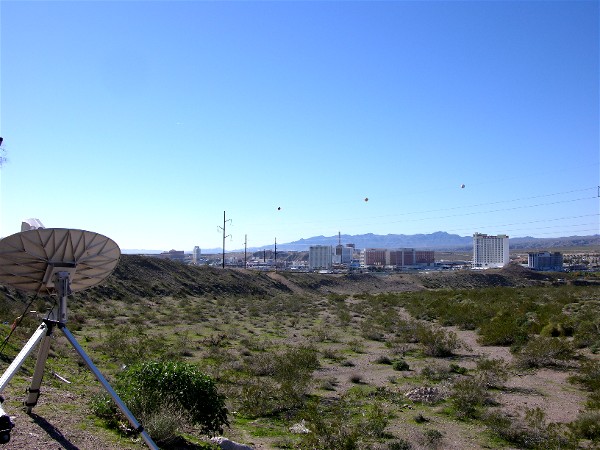 A telephoto view from Laughlin of our campsite where you can just see the satellite dish behind the motorhome: