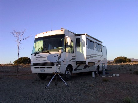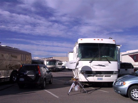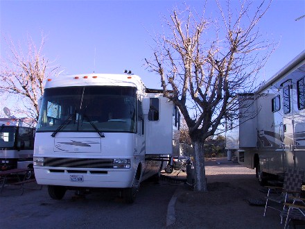 On the 19th we headed up to Santa Fe Skies RV Park for one night so we could dump our waste tanks and fill our water tank, it was 62 miles. Since the campground was very full we did not get as good a spot as we did in October 2002 in this campground. It was not level and was in the back away from the views.