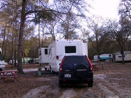 January 11th we drove 225 miles to Clerbrook RV and Golf Resort in Clermont, FL. This would be our home for two weeks. Here is our campsite: