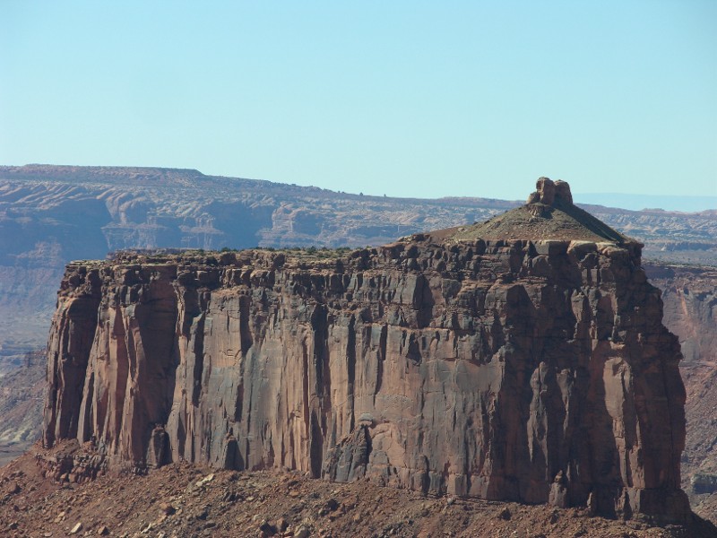 It almost doesn't look real. There is a 4-wheel drive road down below, just barely visible here and there. It is called the White Rim Road.