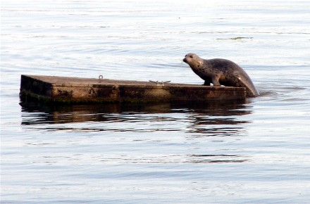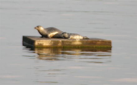 There was a Great Blue Heron on the dock for a while and a seal in the water: